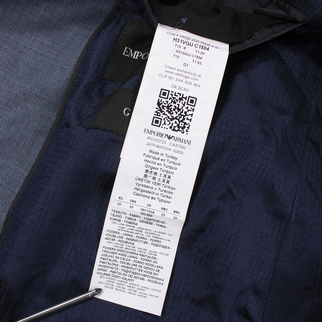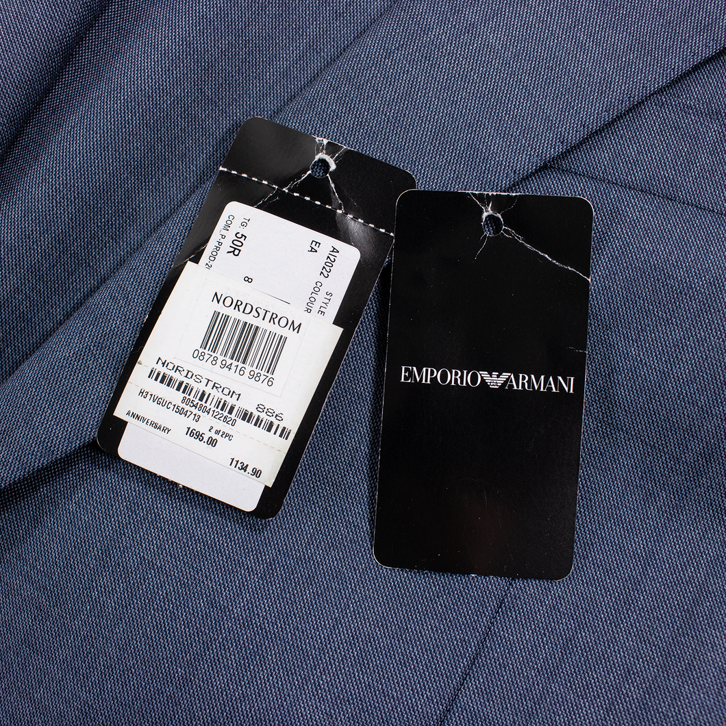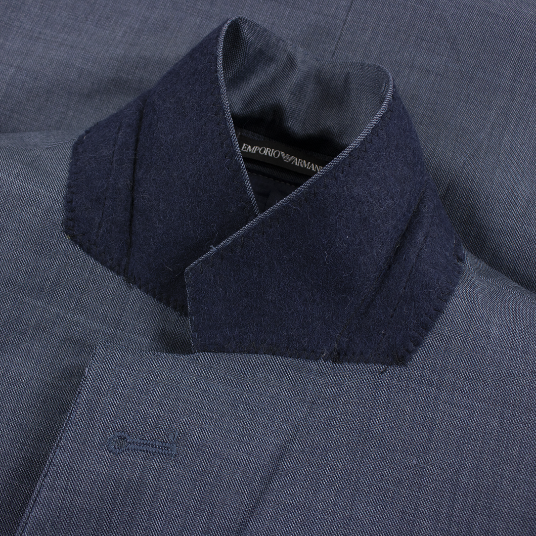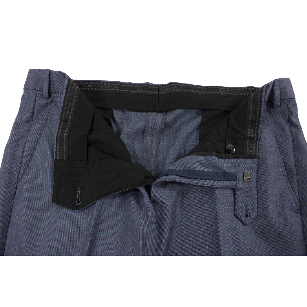 NWT CURRENT $1695 Emporio Armani Blue Wool Sharkskin Flat Front 2Btn Suit 40R